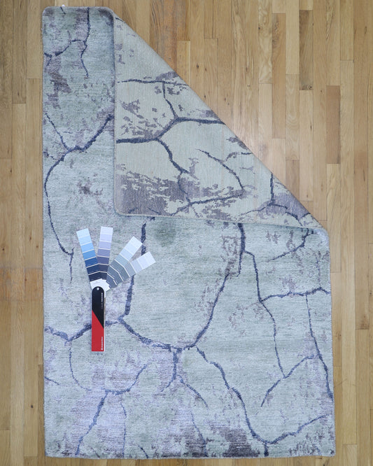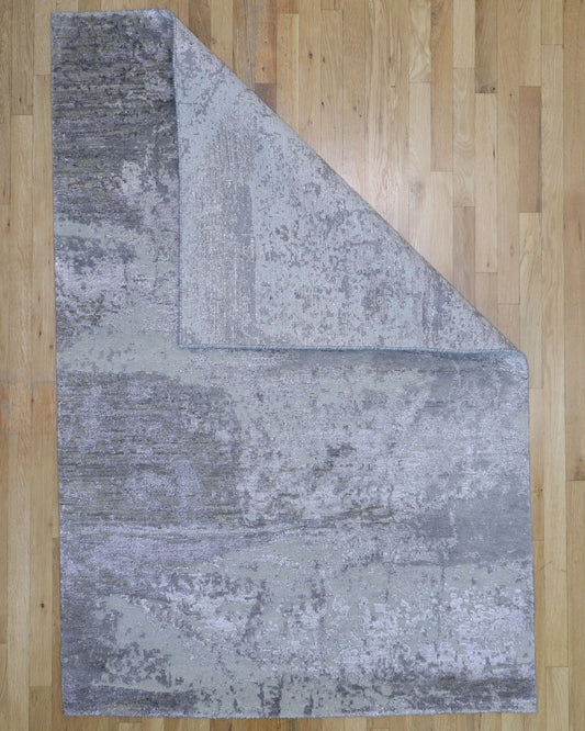 Modern Design 4'1 x 5'10 Hand Knotted Wool Rug Silk Highlights Abstract India