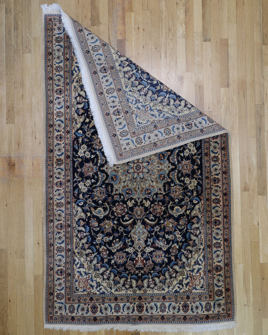 Very Fine Tabrize 4'10 x 6'1 Lamb's Wool Pile Silk Highlights Cotton Foundation Hand Knotted in Iran