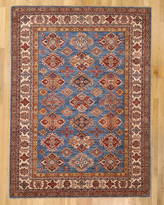 Tribal 5' x 6'8 Lambs Wool Rug Kazakh Hand Knotted in Pakistan