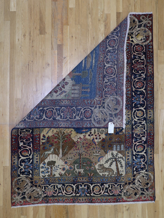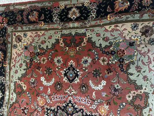 Very Fine Tabrize 4'10 x 6'1 Lamb's Wool Pile Silk Highlights Cotton Foundation Hand Knotted in Iran