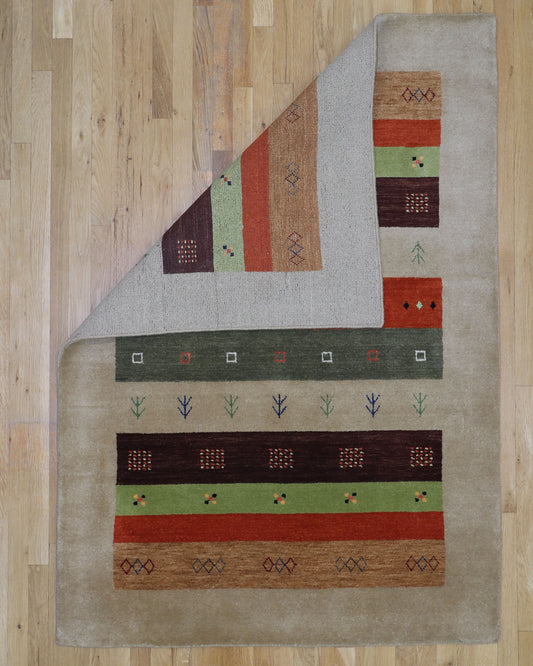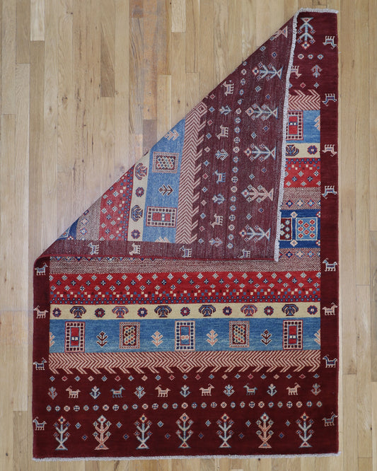 Fine Gabbeh 4'2 x 6' Hand Knotted Wool Area Rug India
